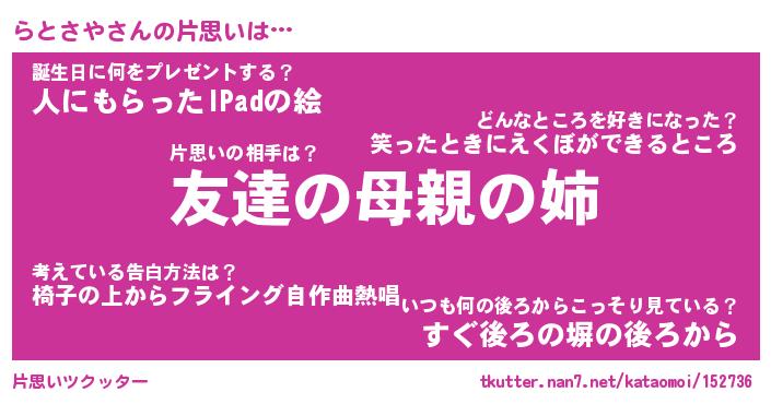 | ヘコむあだ名 | 『らとにー』『酢こんぶ』『らとっ子』 |