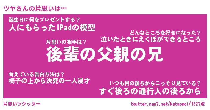 | ヘコむあだ名 | 『ツヤにゅー』『豆乳』『ツヤ太郎』 |