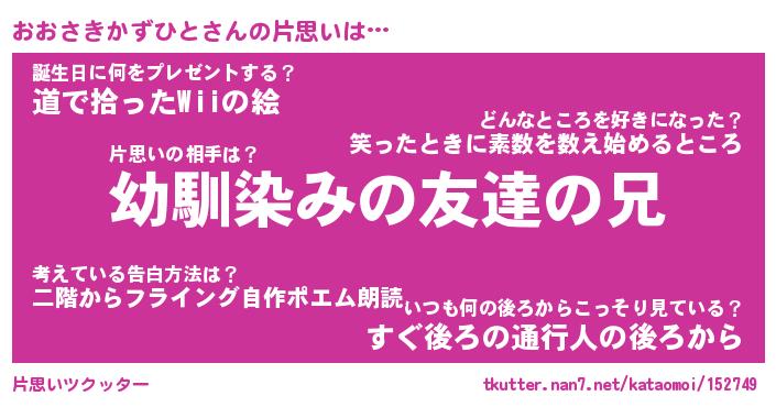 | 男性向けラノベタイトル風あだ名 | 『おおさきかずひとの憂鬱』 |