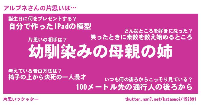 | 意味不明あだ名 | 『ペロリンアルブネ』『永久保存アルブネ』 |