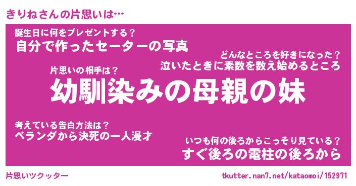 | ヘコむあだ名 | 『きりにー』『つくし』『きりっ子』 |