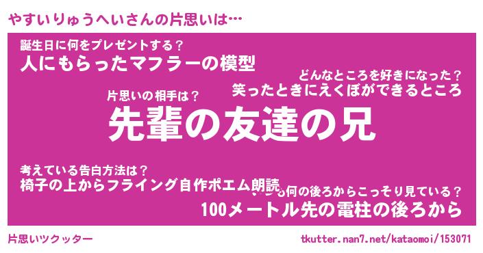 | 胡散臭い通販商品みたいなあだ名 | 『モテモテ間違いなし霊験あらたかなお札…その名も「やすいりゅうへい」』 |
