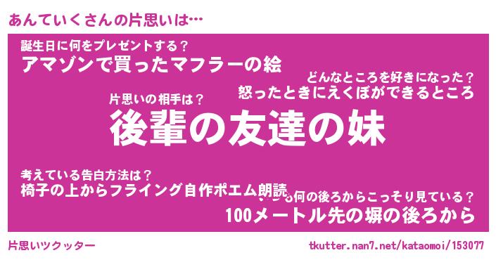 | ヘコむあだ名 | 『あんっふぃ~』『つくし』 |