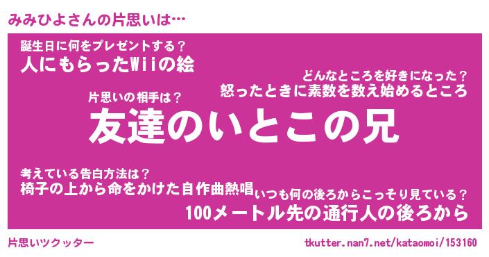 | ヘコむあだ名 | 『みみもー』『酢こんぶ』『みみっぺ』 |