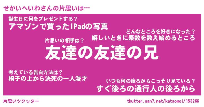 | 胡散臭い通販商品みたいなあだ名 | 『億万長者になれる霊験あらたかなお札…その名も「せかいへいわ」』 |