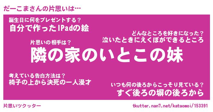 | 胡散臭い通販商品みたいなあだ名 | 『必ず成功する水晶球…その名も「だーこま」』 |
