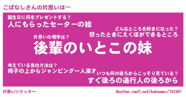 | ファンタジー風あだ名 | 『コバフェル』『エターナルコバナシー』 |