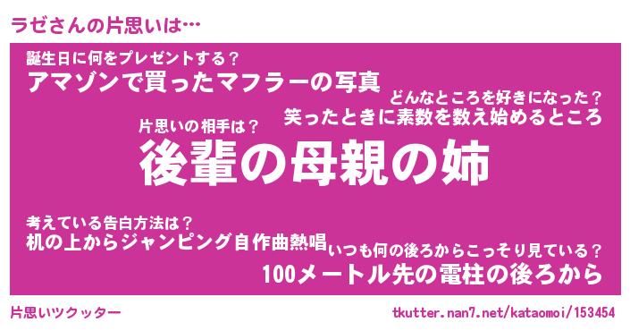 | ヘコむあだ名 | 『ラゼにー』『なまこ酢』『ラゼっ子』 |