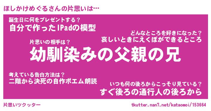 | 胡散臭い通販商品みたいなあだ名 | 『必ず成功する水晶球…その名も「ほしかけめぐる」』 |