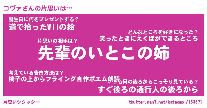| ファンタジー風あだ名 | 『コヴフェル』『エターナルコヴァー』 |