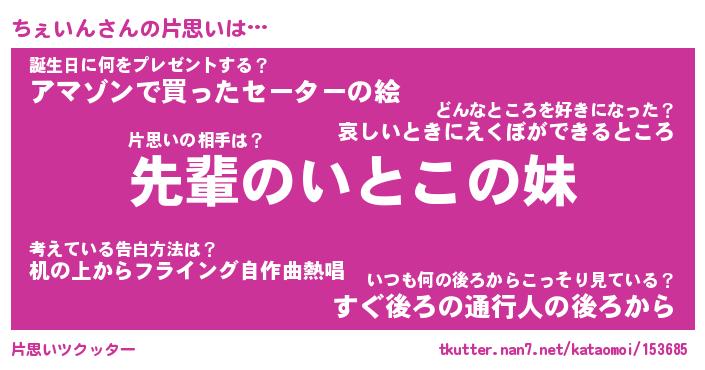 | 意味不明あだ名 | 『ペロリンちぇいん』『永久保存ちぇいん』 |
