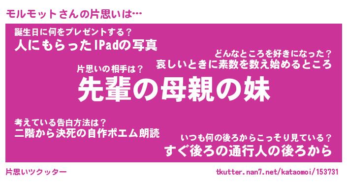 | ファンタジー風あだ名 | 『モルフェル』『エターナルモルモットー』 |