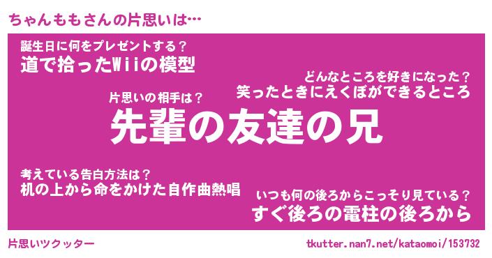| 胡散臭い通販商品みたいなあだ名 | 『モテモテ間違いなし霊験あらたかなお札…その名も「ちゃんもも」』 |