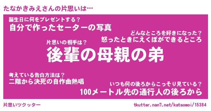 | 胡散臭い通販商品みたいなあだ名 | 『億万長者になれるブレスレット…その名も「たなかきみえ」』 |