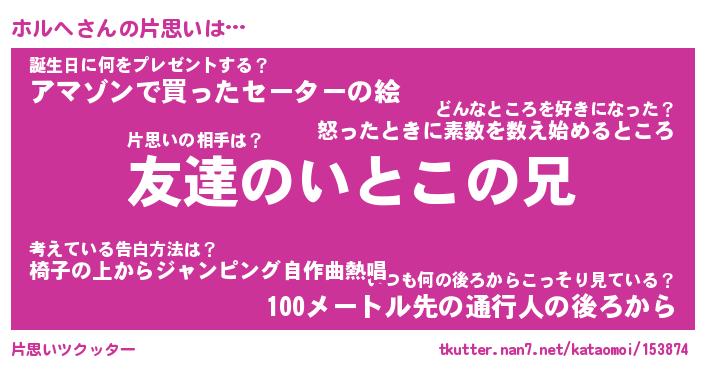 | ヘコむあだ名 | 『ホルにゅー』『酢こんぶ』 |