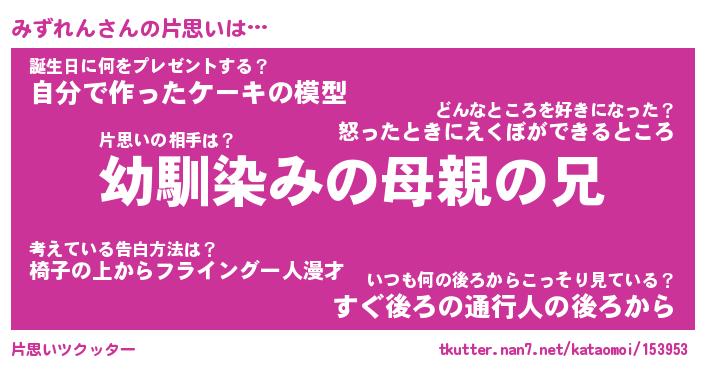 | ファンタジー風あだ名 | 『ミズフェル』『エターナルミズレンー』 |
