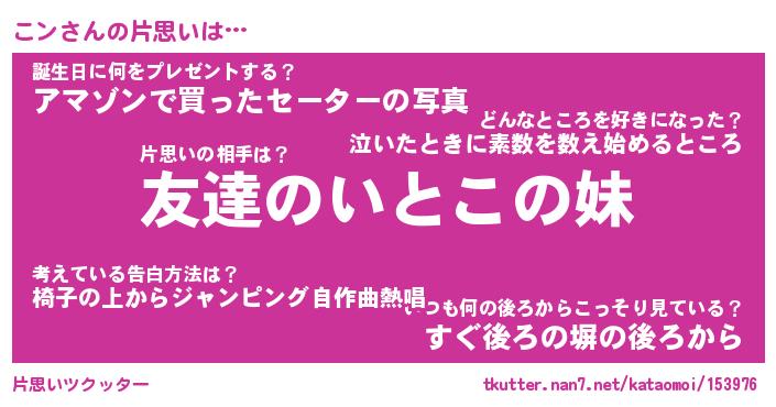 | ヘコむあだ名 | 『こンもー』『なまこ酢』『こンっ子』 |