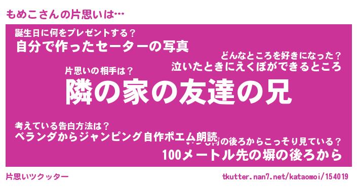 | ファンタジー風あだ名 | 『モメフェル』『エターナルモメコー』 |