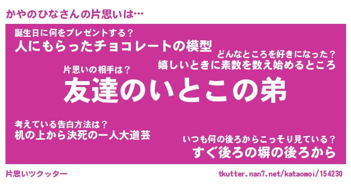 | ヒーロー風カッコイイあだ名 | 『スーパーカヤノヒナ』『幻影騎士カヤ』 |