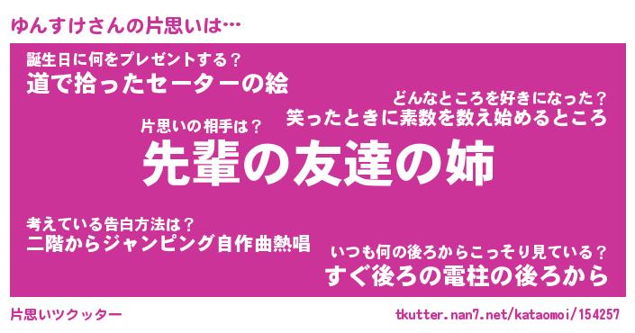 | 意味不明あだ名 | 『ペロリンゆんすけ』『永久保存ゆんすけ』 |