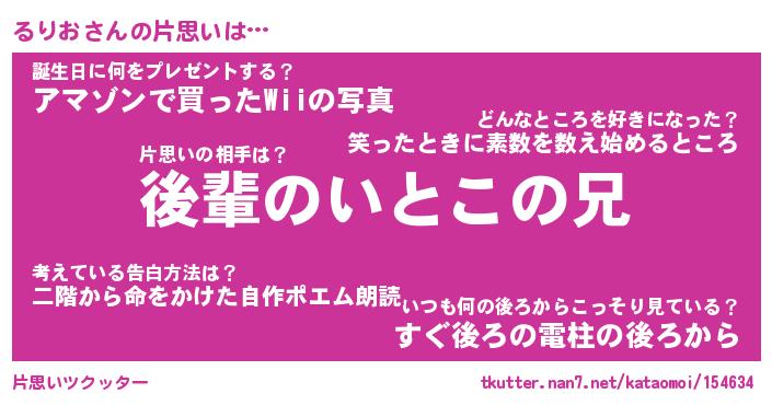 | 恥ずかしいあだ名 | 『プリティーるりお』『るりっちょ』 |