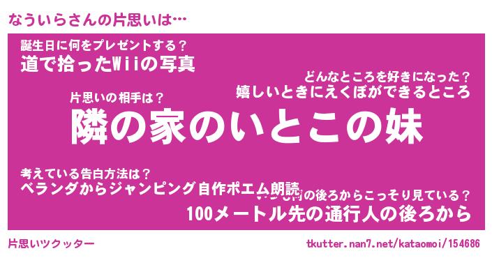 | 意味不明あだ名 | 『ペロリンなういら』『永久保存なういら』 |