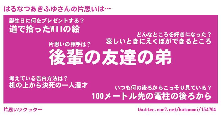| ヘコむあだ名 | 『はるっふぃ~』『豆乳』『はるを』 |
