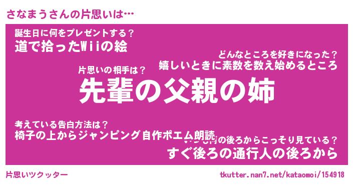 | ヘコむあだ名 | 『さなふぇ~』『なまこ酢』 |