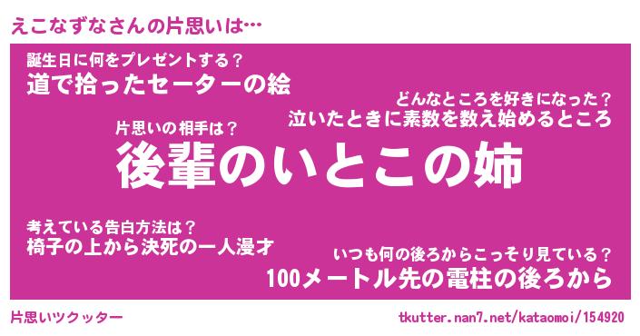 | 伝説のあだ名 | 『封印されしスナイパーえこなずな』 |