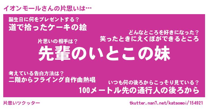 | 胡散臭い通販商品みたいなあだ名 | 『モテモテ間違いなし水晶球…その名も「イオンモール」』 |