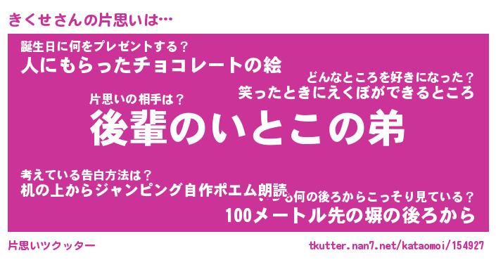 | ヘコむあだ名 | 『きくにゅー』『酢こんぶ』 |