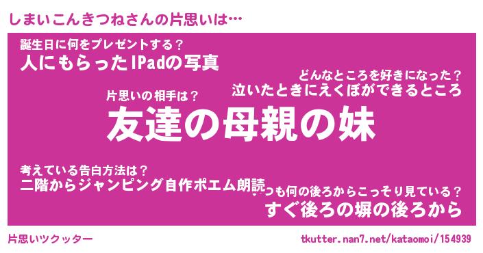 | ツイッター | しまいこんきつねさんのツイッターID『fukuyoka_man』 |