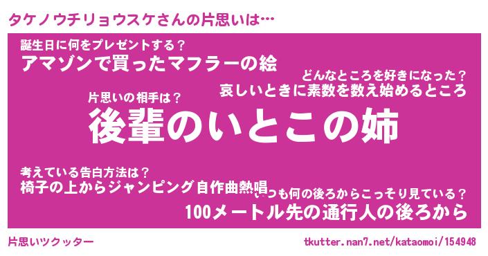 | ヘコむあだ名 | 『タケもー』『なまこ酢』 |