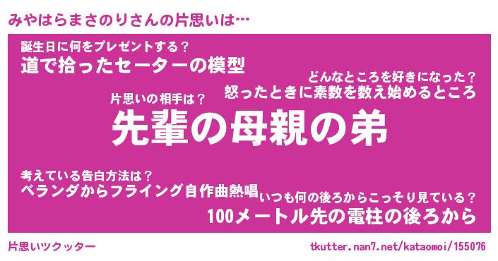 | ヘコむあだ名 | 『みやにー』『豆乳』『みやっ子』 |