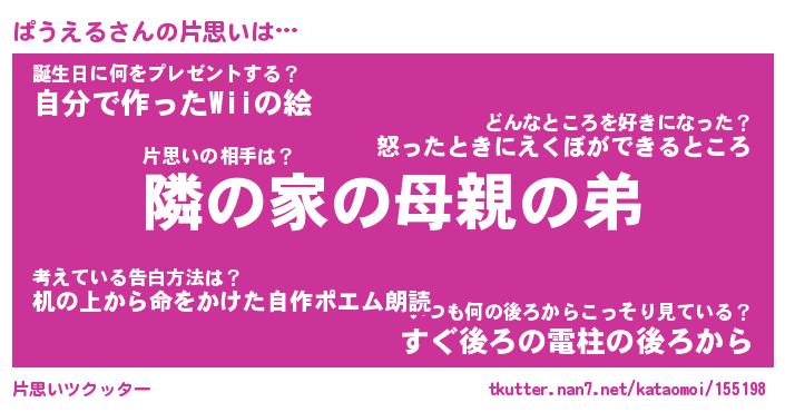 | ヘコむあだ名 | 『ぱうにー』『牛乳』『ぱうお』 |