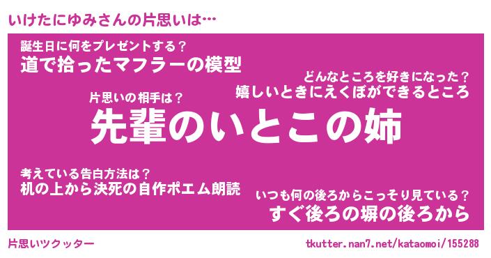 | 恥ずかしいあだ名 | 『プリティーいけたにゆみ』『いけっちょ』 |