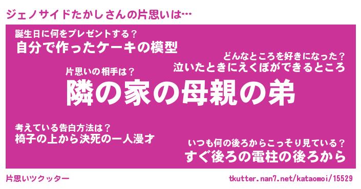 | ヒーロー風カッコイイあだ名 | 『スーパージェノサイドタカシ』 |
