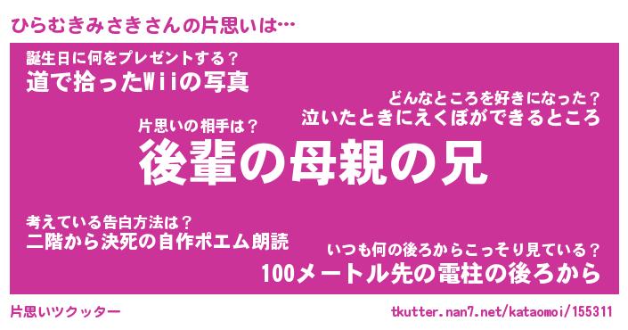 | ヘコむあだ名 | 『ひらにー』『牛乳』『ひらっちょ』 |