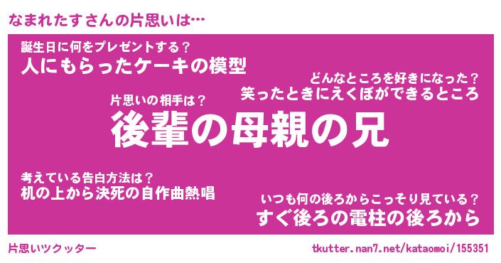 | ヘコむあだ名 | 『なまふぇ~』『つくし』『なまお』 |