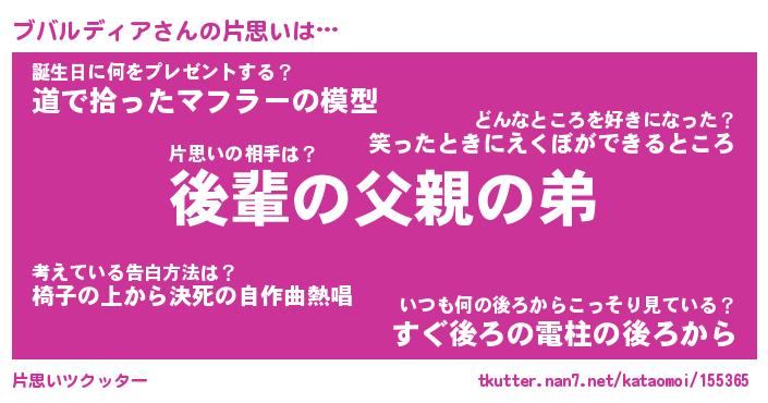 | ヘコむあだ名 | 『ブバにゅー』『豆乳』『ブバっ子』 |