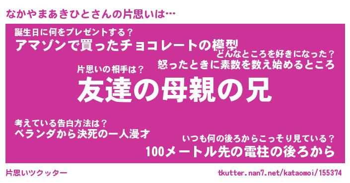 | 女子向けラノベタイトル風あだ名 | 『誰かこのなかやまあきひとを説明してください! ~契約から始まるウェディング~』 |