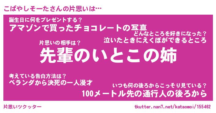 | 胡散臭い通販商品みたいなあだ名 | 『モテモテ間違いなし水晶球…その名も「こばやしそーた」』 |