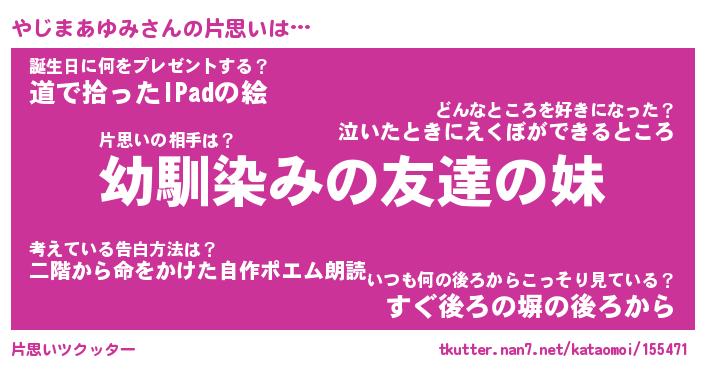 | 恥ずかしいあだ名 | 『プリティーやじまあゆみ』『やじっちょ』 |