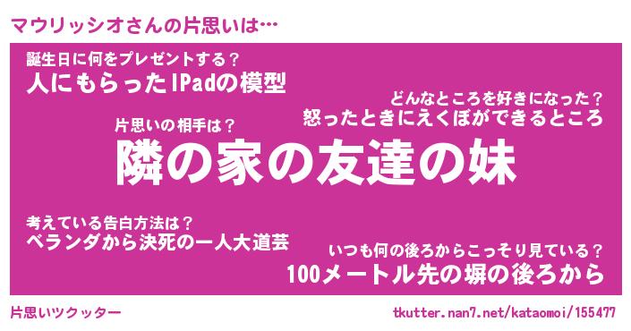 | ヘコむあだ名 | 『マウもー』『つくし』『マウっ子』 |