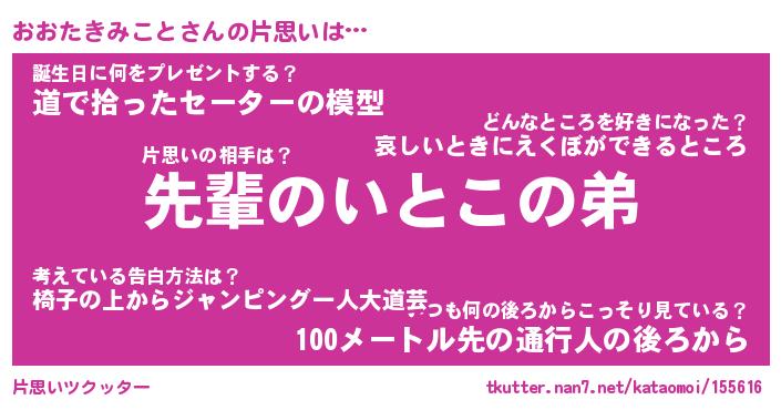 | 胡散臭い通販商品みたいなあだ名 | 『モテモテ間違いなし霊験あらたかなお札…その名も「おおたきみこと」』 |