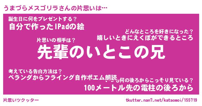 | ツイッター | うまづらメスゴリラさんのツイッターID『katatsumuri_kun』 |