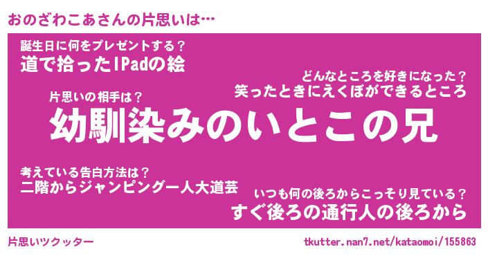 | 胡散臭い通販商品みたいなあだ名 | 『必ず成功する霊験あらたかなお札…その名も「おのざわこあ」』 |