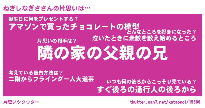 | ヘコむあだ名 | 『ねぎにゅー』『なまこ酢』『ねぎお』 |