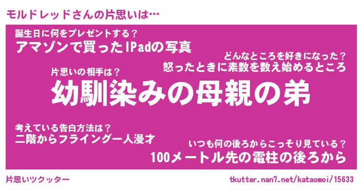 | 男性向けラノベタイトル風あだ名 | 『モルドレッドの憂鬱』 |
