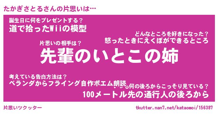 | 胡散臭い通販商品みたいなあだ名 | 『モテモテ間違いなし水晶球…その名も「たかぎさとる」』 |